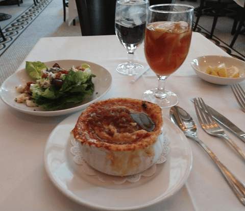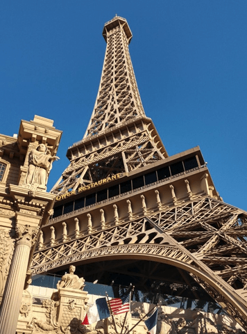 After I rested up, I headed for the Paris casino where they had an Eiffel Tower. I had lunch under the Eiffel tower at a French restaurant. I had French onion soup and a side salad.
