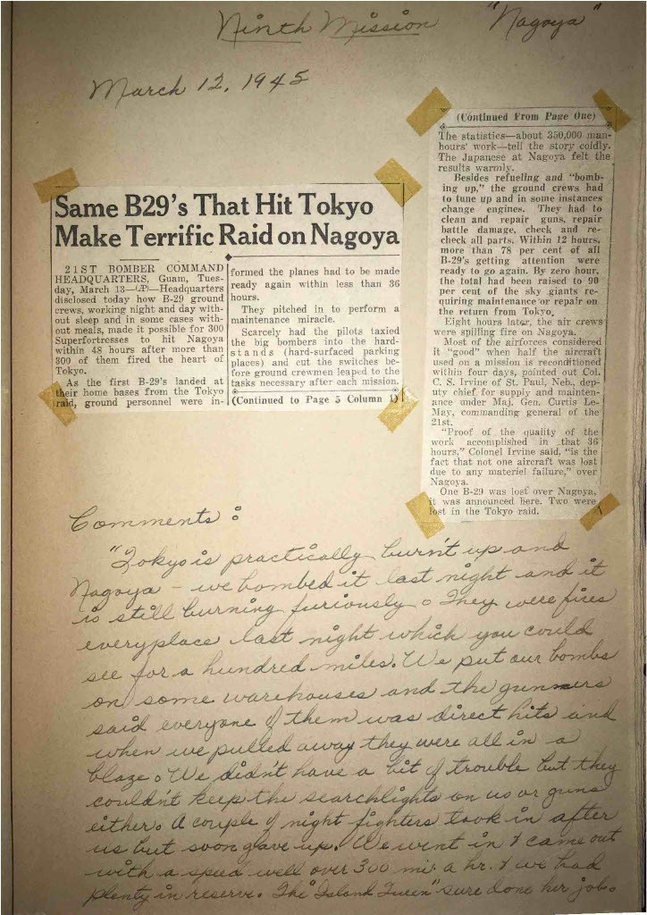On my dad’s ninth mission they bombed Nagoya. Nagoya is home to Toyota Motor Corporation and other manufacturers. Toyota built combat trucks for the Japanese army during World War II. The company was a private company started in 1937.