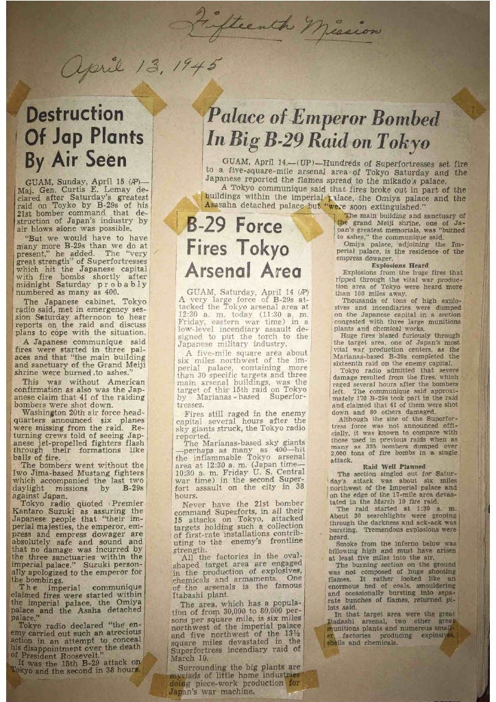 I encourage anyone who had a parent or grandparent who flew in the B29’s from Tinian Island in 1945 to contact me. Without these heroes protecting our freedoms, we would not be able to celebrate our country’s founding on Independence Day.